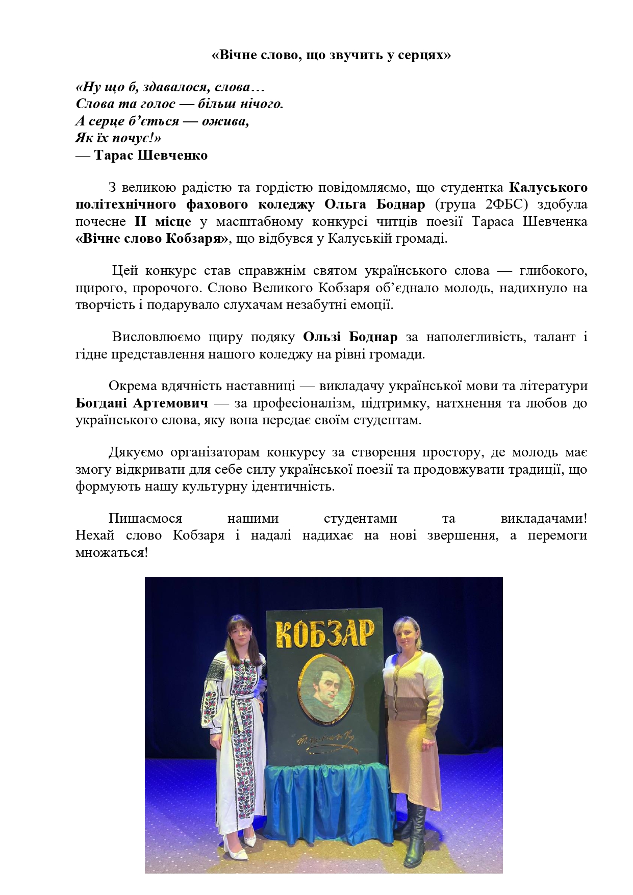 20 лютого 2026 року у Калуському політехнічному фаховому коледжі відбулася патріотична лінійка, присвячена вшануванню пам’яті Героїв Небесної Сотні.