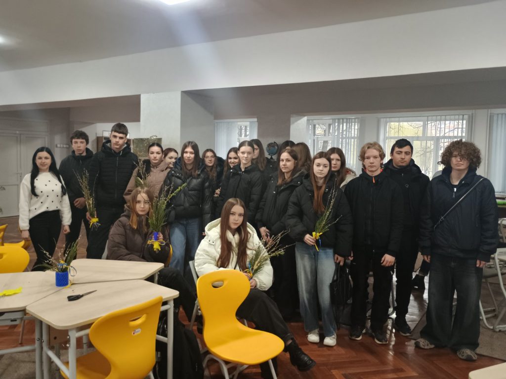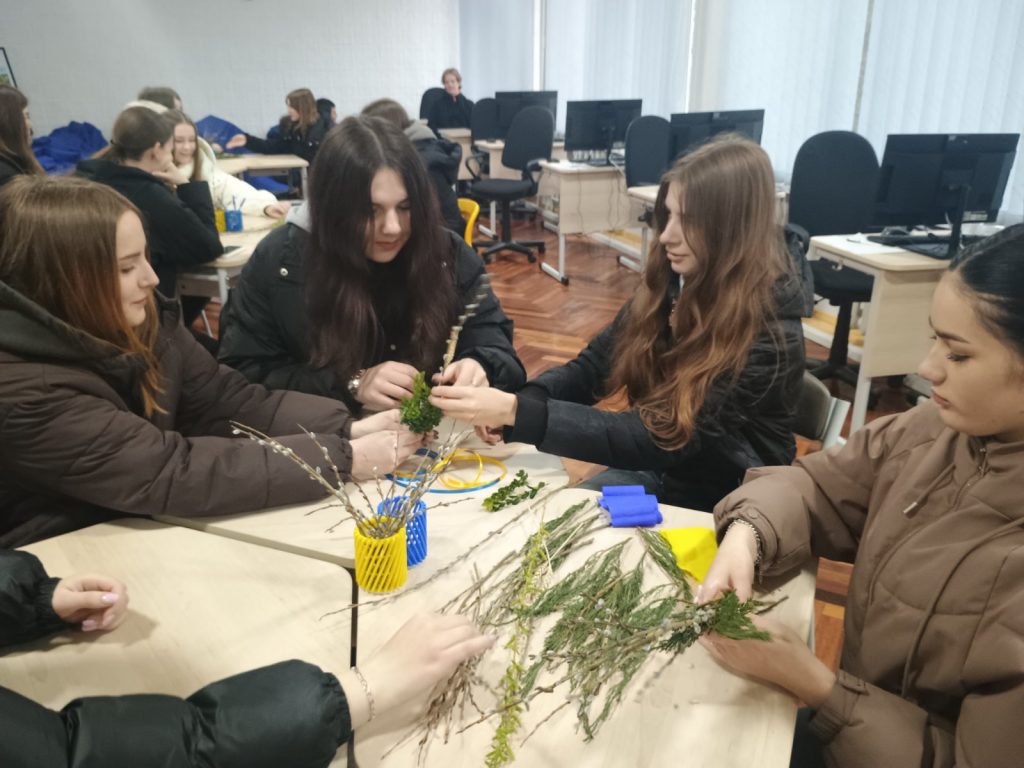 Здобувачі освіти долучилися до майстер-класу з виготовлення вербових композицій – символічних букетів із гілочок верби, що є невід’ємною частиною українських народних традицій. Початком події став перегляд тематичного фрагменту фільму про урочистий Вхід Ісуса в Єрусалим. Глядачі мали змогу краще зрозуміти події, що передували Великодню, відчути атмосферу того часу та глибше усвідомити духовний зміст свята.