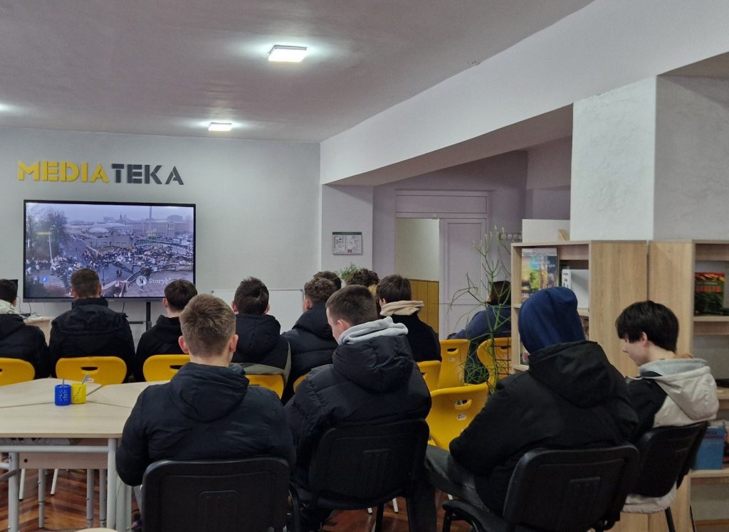 Особливо зворушливим моментом став перегляд документального фільму про Героїв Небесної Сотні, який відбувся в медіатеці закладу освіти. Захід організувала завідувач бібліотекою — Бучак Галина Михайлівна. Саме завдяки її ініціативі та небайдужості здобувачі освіти мали можливість у камерній, зосередженій атмосфері глибше осмислити події Майдану, побачити реальні історії мужності, жертовності та любові до України.