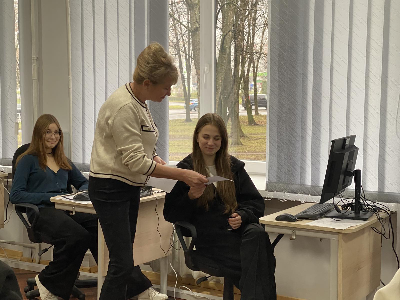 Марія Князевич – практичний психолог, здійснює діагностичний мінімум, організовує групові заняття з елементами тренінгу, спрямовані на розвиток комунікативних умінь, згуртування студентських колективів та покращення адаптації до нового освітнього середовища.