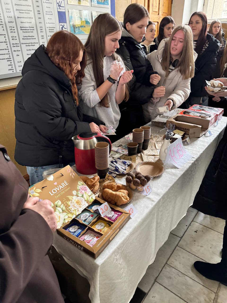 Перед урочистою частиною в холі коледжу відбувся благодійний ярмарок на підтримку Збройних сил України, організований комісією обліково-економічних дисциплін. До доброї справи долучилися студенти, викладачі та всі охочі. Кожна смакота, кожен виріб, кожна гривня — це наша спільна подяка тим, хто сьогодні виборює свободу для нашої країни.
